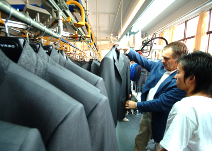 運用高品質的德國BRISAY立模整燙機,采用電腦控制蒸汽輸出量、溫度、壓力、定型、抽濕時間,根據(jù)面料的厚薄、質地、性能,以38種不同整燙程序調整以上各個參數(shù),配合服裝的整燙。